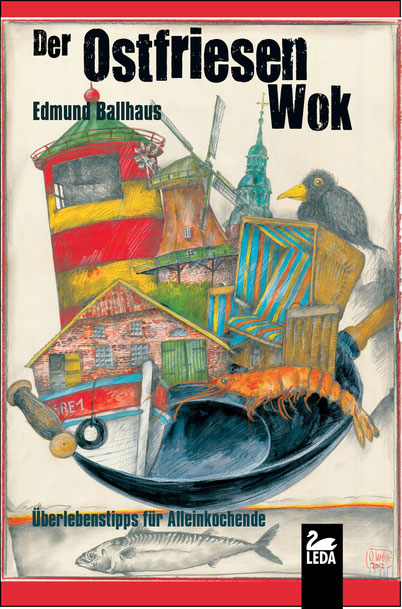 Gulfhäuser, eine Nordseekrabbe, eine Windmühle, ein Strandkorb – alles sieht auf einmal ganz anders aus. Im Wok des Autors Edmund Ballhaus kommen selbst die Wahrzeichen Ostfrieslands in